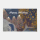 This is a new Christmas time design. Colorful, elegant, lit Christmas trees on a blue and white and gold background.