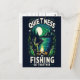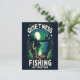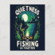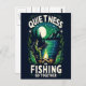 A graphic illustration depicting a man fishing at night with a full moon in the sky. The text reads Quietness and Fishing Go Together.