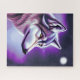 This is a beautiful puzzle for a wolf lover featuring a mystical wolf face profile in white and shades of purple and blue.