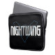This graphic design cleverly captures the essence of Nightwing, one of Batman's most skilled protégés, through a modern and minimalist aesthetic. The logo features the iconic Nightwing symbol in a sleek, metallic blue that contrasts sharply against the deep black background, creating a striking visual impact. The word "NIGHTWING" is repeated above and below the emblem, with a stylized font that enhances the futuristic vibe of the design. This graphic is not only a nod to Nightwing's agility and stealth but also his evolution from the vibrant, acrobatic Robin into a formidable hero in his own right. The clean lines and sharp angles echo Nightwing's precision and the high-tech nature of his gear and tactics, making this a perfect emblem for fans of the character and the larger DC Universe.