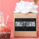 This graphic design cleverly captures the essence of Nightwing, one of Batman's most skilled protégés, through a modern and minimalist aesthetic. The logo features the iconic Nightwing symbol in a sleek, metallic blue that contrasts sharply against the deep black background, creating a striking visual impact. The word "NIGHTWING" is repeated above and below the emblem, with a stylized font that enhances the futuristic vibe of the design. This graphic is not only a nod to Nightwing's agility and stealth but also his evolution from the vibrant, acrobatic Robin into a formidable hero in his own right. The clean lines and sharp angles echo Nightwing's precision and the high-tech nature of his gear and tactics, making this a perfect emblem for fans of the character and the larger DC Universe.