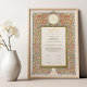 This Nikkah Certificate is exquisitely crafted for Islamic ceremonies. Merging the timeless charm of Art Nouveau with contemporary vintage aesthetics and traditional ornamental designs, this collection is a testament to the beauty and depth of Islamic cultural heritage. Art Nouveau Meets Islamic Tradition: Each piece in our collection is inspired by the flowing elegance of Art Nouveau, infused with elements that honor Islamic traditions. We’ve reimagined these classic designs for the modern Muslim bride and groom, balancing historical artistry with contemporary sensibilities. Contemporary Vintage with a Cultural Soul: "Eternal Elegance" is not just a name but a celebration of heritage and modernity. Our designs seamlessly blend vintage sophistication with a modern touch, all while respecting the cultural values and aesthetics of Islamic traditions. The collection features garments adorned with intricate motifs and a color palette that speaks to both the past and the present. Islamic Ornamentation and Calligraphy: Central to our collection is the beautiful use of Islamic calligraphy, including the Bismillah ("In the name of Allah"), elegantly incorporated into invitations and stationery. Some pieces also feature prayers or vows in exquisite Arabic lettering, symbolizing the spiritual union and blessings for the couple - you can remove them if they don't fit.