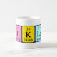 Niklas spelled out as N I K La S (Nitrogen Iodine Potassium Lanthanum Sulfur) on a mug for the scientist in you.