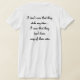 My overall review is that the T-shirt is nice, it fits true to size however the font is significantly smaller than advertised and you can't read it. The printing is unreadable and there is a strain to read it. It does not look like the advertised product. Maybe the shirt color is darker or a larger more visible font should have been used. Photos with and without flash and font is barely legible.
