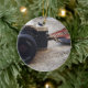 Lightweight, smooth, pure white ornament with nice sheen. Perfect size to be seen from across the room ... and to attract closer inspection! Price was great for ordering enough for the whole family! Clear, bold black design just as requested. Matches the order exactly. Just so nice!