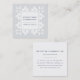 Chic square business cards feature a decorative Moroccan inspired pattern on the front side in elegant pale gray, framing your name and business name or occupation in classic navy blue lettering. Add your full contact details to the reverse side. A lovely choice for any occupation; sample shown for interior design professions.