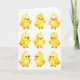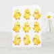 This card shows nine cute, round baby birds arranged in a neat 3x3 grid on a white background, each one a sunny yellow with a soft, downy look. Their tiny orange beaks and matching webbed feet add warm contrast, while wide, glossy dark eyes give them an attentive, friendly presence. A few have faint rosy cheeks, and the gentle lighting makes their plump shapes look extra soft, like they’re leaning toward you for a closer hello. Small pose changes across the grid create little moments of connection, with one lifting a wing as if waving and another turning its head as though noticing a neighbor. Two of them seem to glance toward each other in a way that suggests a sweet bond, like close friends sharing a quiet joke 🐰. There’s no busy scenery, so the simple white space keeps all attention on their expressions and the cozy togetherness they suggest 🌷. Any greeting text would sit neatly at the top in a light spring color, with a smaller line placed near the bottom in a softer matching shade, leaving the birds centered and evenly spaced. The grid shows three rows of three yellow chicks, each outlined with gentle shading, with orange beaks and feet repeating like a tidy pattern.
