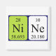 Nine spelled out as Ni Ne (Nickel Neon) on a magnet for the scientist in you.