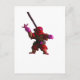 Ninja in camouflage red attacking with shuriken (throwing star) and staff.