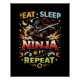 A fierce cartoon ninja slices through explosions beneath the mantra of a gamer’s relentless routine.