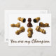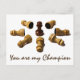 A brown chess pawn surrownded by seven laying white-yellowish pawns. Ninja victory over enemies. Isolated transparent image. Text You are my Champion. You can change or delete the text.