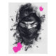 An illustration of a Ninja in black, gray and pink