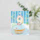 Ninth birthday candles on frosted cake in blue postcard