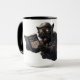 Start your morning with a side of dark humour and high altitude panic this coffee mug features the hilarious illustration of a black cat skydiver who has just realised he is on his very last life in full flight gear and goggles. He's desperately clutching his nine lives of the black cat logbook showing eight boxes crossed off and the final one looming large whether your cat lover of thrill seeker or just someone who feels like they're navigating their own knife life before their 1st cup of coffee this two tone mug is the perfect companion.