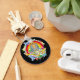 Meditating Buddha peacefully sits among a colorful array of stars, rainbows, flowers and Yin Yang symbols! An explosion of colorful and mindfulness! Eye catching Buddha gifts!