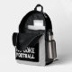 Lightweight and durable, our Retro No Joke Football Linewoman Backpack is just what you need. The spacious interior is ideal for travel, film sessions, gym, or any mobile storage need. Bring your stuff with you in style! Features Adjustable padded shoulder straps, two chambers on the inside for laptop storage, mesh side pockets and an identification label. This backpack is as tough and rugged as an offensive line shield.