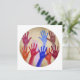Vibrant, colorful hands reach upwards, overlapping in shades ranging from red to blue. The arrangement creates a dynamic sense of movement and unity.