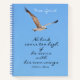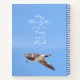 A Seagull in flight flying across a clear blue sky with just a whisper of a white cloud on this beautiful notebook with an inspirational and motivational quote by William Blake "No bird soars too high if he soars with his own wings." Feel free as this seabird to journal your thoughts and ideas and personalize this coastal photographic notebook with your Name or you own text on the front and back of this sky blue notebook its unique photographs of gulls flying.