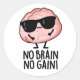 No Brain No Gain Funny Brain Pun features a cute brain looking cool in sunglasses declaring "No pain no gain". Perfect Puns gift for family and friends who love cute brain puns.