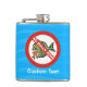 Well made flask, a little better than I had expected. Flask came in clear plastic box which gave it a nice presentation when I took it out of the zazzle packaging. Image is not printed on flask but on sticker. Don't know how this will hold up I haven't used it yet. This would make a Great gift! I plan to purchase more for friends! Cheers. I thought a little brighter than computer. Very crisp, writing wasn't