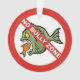 Forbidden sign over angry fish bullying a little one. Custom text at back side.
