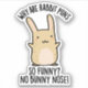 No Bunny Nose Funny Rabbit Puns features a cute bunny who's missing his nose! Perfect Puns gift for family and friends who love cute bunny puns.