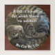 A cute and unique gray tabby cat curled up painted on the stone. Humorous cat quotes on the both side, “No Cat No Life” and “A cat is a puzzle for which there is no solution.”