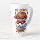 A funny and sarcastic colorful design showcases an adorable highland cow perched in an empty coffee cup. With a grumpy expression, big blue eyes, and brown fur, the cow adds a charming touch. The vibrant text reads, "No coffee much grumpy." This design is featured on a variety of products, making it a perfect gift for coffee enthusiasts.