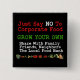 Above a row of tasty vegetables are the words: "Just say no to corporate food. Grow your own. Share with family, friends, neighbors, the local food bank." An excellent way to remind people the can have control over what they eat if they grow it themselves.