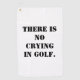 This golf towel has a simple, funny reminder, "there is no crying in golf", written in bold black lettering against a white background. It's made of a poly/microfiber blend to keep your gear clean and dry. It comes with a grommet and brass plated hook ready to attach to your club bag. Fun for him or her, young or old. Feel free to contact me through Zazzle if you have questions about this towel. I'm happy to help!
