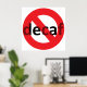 Funny decaf poster for real coffee drinkers. Caffeine rules! Say no to decaffeinated coffee. Stop decaf coldbrew. End light roast decaf coffee. The word "decaf" is covered with a red prohibited symbol (circle with a line through it). Just say "no" to decaf.