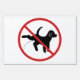 Simple graphic of a black peeing dog silhouette inside a red no symbol.