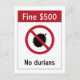 No Durians (2) Sign, Singapore Postcard