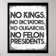 No Felon Presidents No Dictators No Oligarchs No K Poster