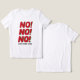 No, NO, NO Shirt I Can Say It Again Funny Shirt funny t-shirt. Youn customize by changing the last line with your own message, quote or joke or pun and by changing shirt styles for mens and womens styles and shirt colors. Gag, novelty tee gift idea for all occasions including birthdays, graduation and parties. excellent party favor tee. Custom boyfriend or girlfriend shirt. custom gifts. funny shirt for your not so active loved ones. Custom gifts. Funny shirts for dad for father's day, boyfriend, brother girlfriend or your buddies and loved ones.
