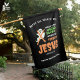 Fun, stylish Christian Halloween house flag with NO HOCUS POCUS WHEN YOU FOCUS ON JESUS. There is CUSTOMIZABLE TEXT, namely John 8:32 - IF THE SON SETS YOU FREE, YOU ARE FREE INDEED. At the bottom is a CUSTOMIZABLE NAME, so you can personalize by adding your name or delete. This Christian Halloween house flag is a great alternative to the usual Halloween porch decor. Choose from Christian Halloween designs especially created for people of faith who want to celebrate an alternative to Halloween. Matching gifts are available.