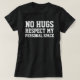 NO HUGS Respect My Personal Space. You can also click on "Customize it" to change the font, color, and size! Funny Slogan / Saying great for gatherings, reunions or even everyday socializing! White text / font. Fully customizable.