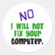 No I Will Not Fix Your Computer Classic Round Sticker