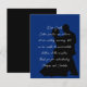 Ask for no kids at the wedding with this message card insert. Vertical, small wedding invitation enclosure cards with message to guests politely requesting no children attend the ceremony, and / or reception. A dancing couple in black silhouette is the background image over a very dark blue. Modern, script font is used in light gray for the message text. Sample wording is, "Dear Guests, Entire families are welcome at our wedding ceremony, but we are unable to accommodate children at the reception. Thank you for understanding" signed by the bride and groom.