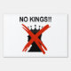 A silhouette of Trump wearing a crown, with a red X, and NO KINGS above it.