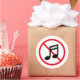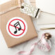 No loud music allowed sound prohibition sign Classic Round Sticker. Custom warning notice stickers for library, living quarters, residential apartment building, flat, shops, museums, business, corporate office, silent room, event, workplace, school room, store, hospital, spa, meditation center, church, yard, park, zoo, garden and other places. Make your own music note logo caution signage with red prohibited circle and cross symbol. Handy for instructing musicians, customers, clients, visitors, guests, kids, tourists etc. Prevent high volume noise nuisance from music radio, boombox and other sources.