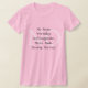 My overall review is that the T-shirt is nice, it fits true to size however the font is significantly smaller than advertised and you can't read it. The printing is unreadable and there is a strain to read it. It does not look like the advertised product. Maybe the shirt color is darker or a larger more visible font should have been used. Photos with and without flash and font is barely legible.