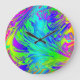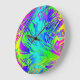 No Numbers Abstract Splashing Rainbow Liquid Large Clock