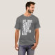 My 11 yo wore adult XL (5’7” 165#). The 8yo is small framed. She wore adult small and tied it in the back. Grandma wore adult large with long sleeve shirt underneath. Tall girl adult medium. Dark haired male adult large. Good quality dark Heather gray, Gildan brand shirt. -it was next up from basic choice and cost about $20 per shirt. Not too thick or thin. Washed and dried well, no major shrinkage. Not see-through. Can wear a bra under it fine. Screen print is just as shown and well done, front and back.