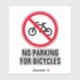 No Parking for bicycles bike park sign vinyl Sticker. Custom warning signs for shops, museums, business, office, workplace, school, store, restaurant, library, entry, entrance, hospital, hotel and other places. Make your own forbidden to park signage with red prohibited circle and cross symbol. Handy for instructing customers, clients, visitors, guests, kids, bikers, cyclers, cyclists, bike riders, tourists etc.
