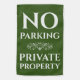 A bold white font says "no parking, private property". It is set against a background color of your personal choice and has an elegant and stylish floral flourish swirl in the middle. Ideal for businesses, wedding venues, private estates and residences.
