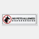 Let people know that pets are not permitted to enter to an establishment or area. Destei's original portrait silhouette of a dog's head resembling a German Shepherd breed dog or a similar looking dog. A red no symbol is placed over the dog. There is also a personalizable text area that now reads: "No Pets Allowed". Under the text there are dog paw prints. The design is framed by a thin black border. The color scheme is black, white and red.