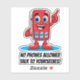 The No Phones Allowed Red Retro Cell Phone Sticker has a humorous illustration with a bright red cell phone smiling and pointing its finger. Below is a text that reads "no phones allowed talk to yourselves," encouraging people to talk to each other and also discouraging the use of phones while driving.
