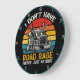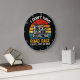 This humorous wall clock features a fun and amusing statement from a truck driver. Against a black background with a teal rim, it showcases a semi-truck silhouette against a vibrant vintage-style sunset backdrop. The bold text proclaims: "I DON'T HAVE ROAD RAGE YOU'RE JUST AN IDIOT". It's a perfect, lighthearted gift for any trucker with a no-nonsense attitude and a strong sense of humor. The design tool can also be used to add custom text if you want your name or company on this clock. You can customize the color of the frame to any color you desire by going into the design tool.