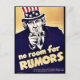 Great quality, restored No Room For Rumors world war 2 poster. WW2Poster store has this and hundreds of ww2 posters, mugs, ww2 stamps and more memorabilia. Relive and cherish the American history. This and many other products with No Room For Rumors in our collection.